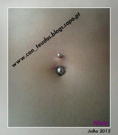 Como o prometido é devido aí está a foto!!! Ficou pequenina, mas o que conta é a intenção... Mais tarde vou retirar este piercing e coloco outro, mais pequenino (talvez um brilhantezinho...algo assim. Por enquanto é deixar estar, bolas!!!)